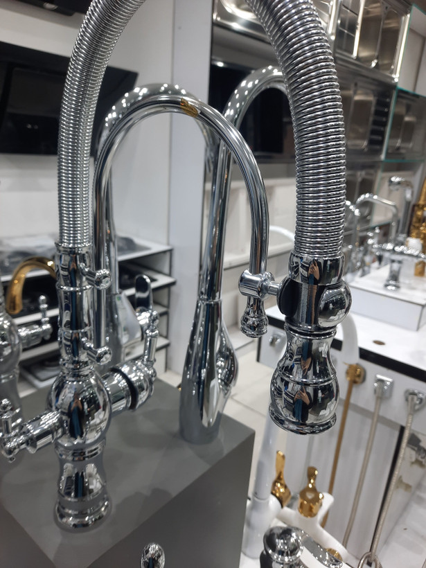 شیر منشور شاوری فنری رنگ کروم (استیل) مدل نگین