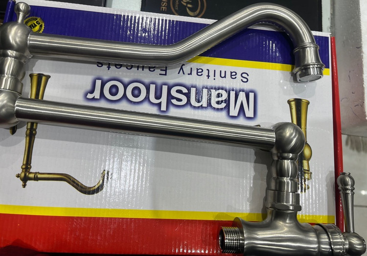 شیر قابلمه پرکن، شیر روی گازی مدل قاجاری رنگ کروم مات ،شیر قابلمه پر کن استیل مات