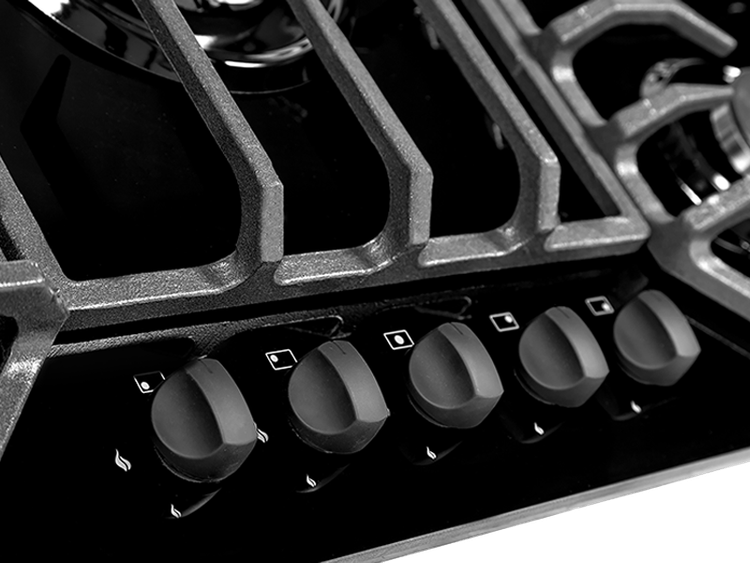 اجاق گاز 5 شعله شيشه اي مدل هامون مشکي