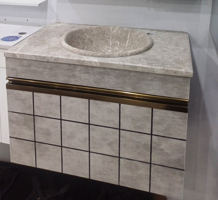 روشویی سنگی رنگ بتونی (طوسی) با سنگ توکار