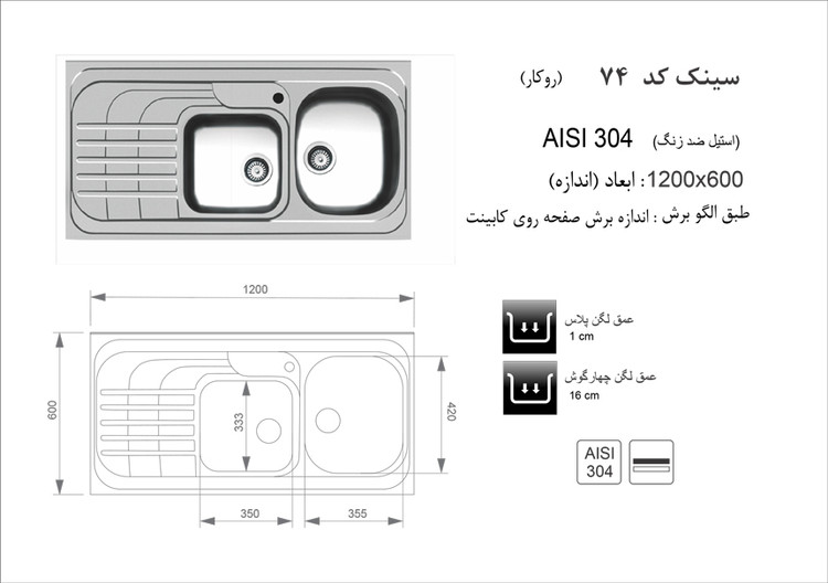 سینک اخوان مدل 74 روکار